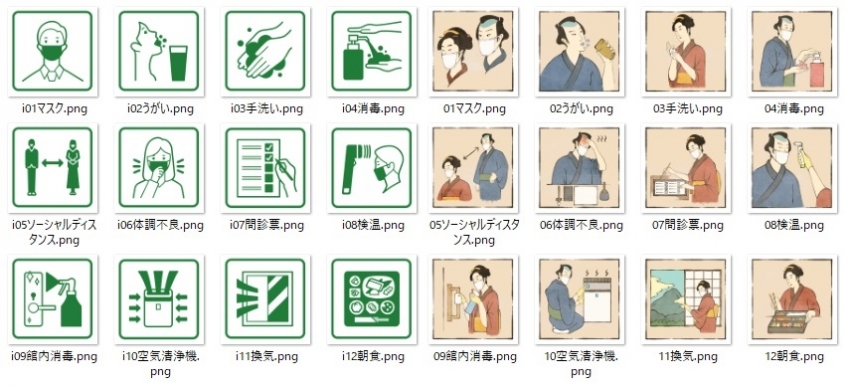 全旅連青年部流通・インバウンド委員会では新型コロナウイルス感染症予防対策の一環として、自施設の衛生管理を見える化するピクトグラムを制作いたしました。お客様にとっても旅館やホテルで働くスタッフにとっても、安全で安心な旅行を楽しんでいただくための一つのツールとしてご活用いただければ幸いです。