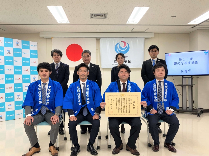 『旅館甲子園』は東日本大震災後の2013年から「旅館で働くスタッフの夢が、笑顔が、日本を元気にする」をテーマに2年に1度開催している。第5回大会は新型コロナウイルス感染拡大の為オンラインでの開催となったが、宿泊業界が厳しい局面を迎える中、積極的な情報発信などを通してスタッフ達に光を当てた。今回の受賞はこういった取り組みが評価されたことによる。観光庁長官表彰には全国の7団体、2名が選ばれ、全旅連青年部からは大沼流通事業担当副部長、照井未来事業担当副部長、渡辺政策委員長が同席した。